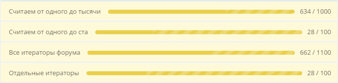Прогресс выполнения итераторов отображается с помощью элемента Градусник. Он показывает соотношение пройденных шагов к общему количеству шагов.