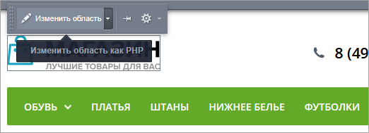 Содержимое области можно отредактировать в публичной и административной частях сайта.