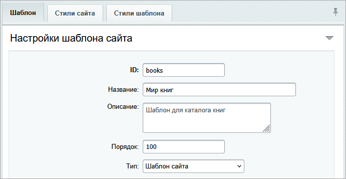 Порядок — число, которое определяет положение шаблона в общем списке шаблонов. Чем меньше число, тем выше шаблон в списке.