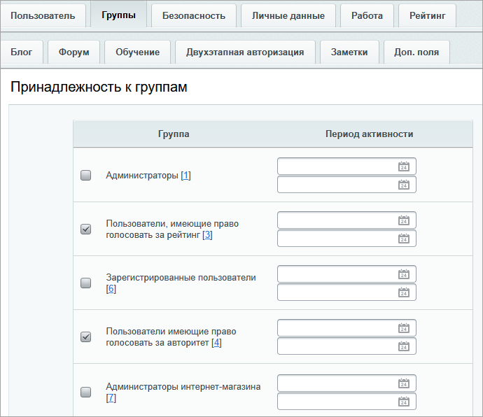 Подробнее о группах читайте в статье Группы пользователей.