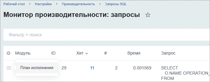 Откройте страницу Настройки > Производительность > SQL-запросы.
